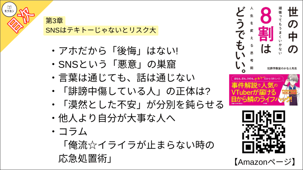 【世の中の8割はどうでもいい。 目次】第3章 SNSはテキトーじゃないとリスク大【犯罪学教室のかなえ先生・要点・もくじ】
