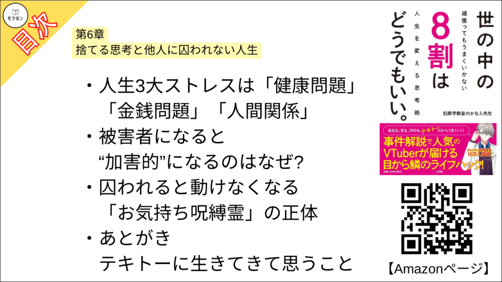 【世の中の8割はどうでもいい。 目次】第6章 捨てる思考と他人に囚われない人生【犯罪学教室のかなえ先生・要点・もくじ】