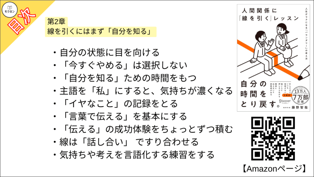 【人間関係に「線を引く」レッスン 目次】第2章 線を引くにはまず「自分を知る」【藤野智哉・要点・もくじ】