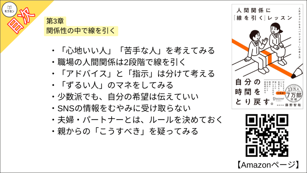 【人間関係に「線を引く」レッスン 目次】第3章 関係性の中で線を引く【藤野智哉・要点・もくじ】