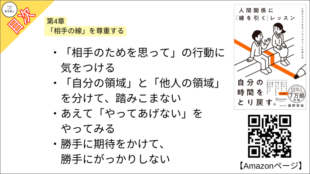 【人間関係に「線を引く」レッスン 目次】第4章 「相手の線」を尊重する【藤野智哉・要点・もくじ】