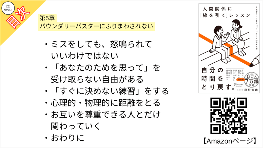 【人間関係に「線を引く」レッスン 目次】第5章 バウンダリーバスターにふりまわされない【藤野智哉・要点・もくじ】