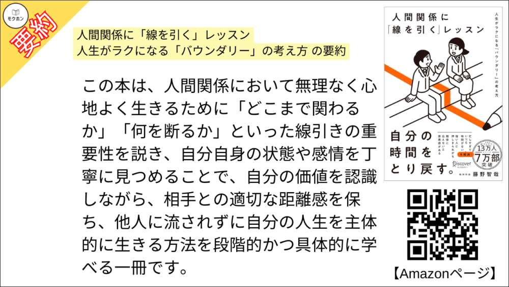 【全目次】人間関係に「線を引く」レッスン 人生がラクになる「バウンダリー」の考え方 / 藤野 智哉【要約・もくじ・評価感想】 #人間関係に線を引くレッスン #藤野智哉 #人間関係
