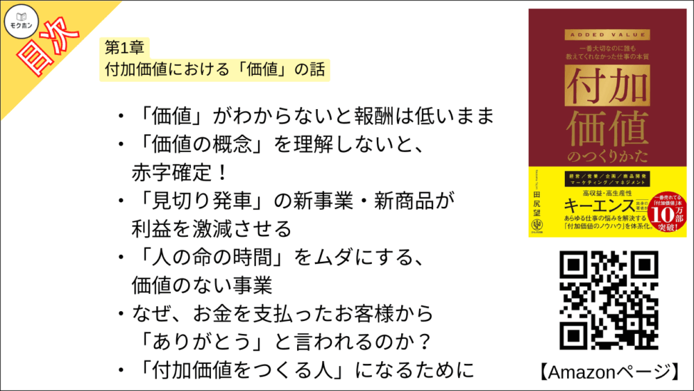 【付加価値のつくりかた 目次】第1章 付加価値における「価値」の話【田尻望・要点・もくじ】
