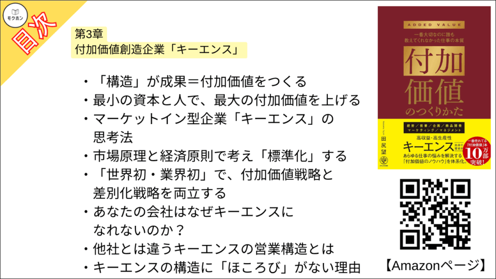 【付加価値のつくりかた 目次】第3章 付加価値創造企業「キーエンス」【田尻望・要点・もくじ】