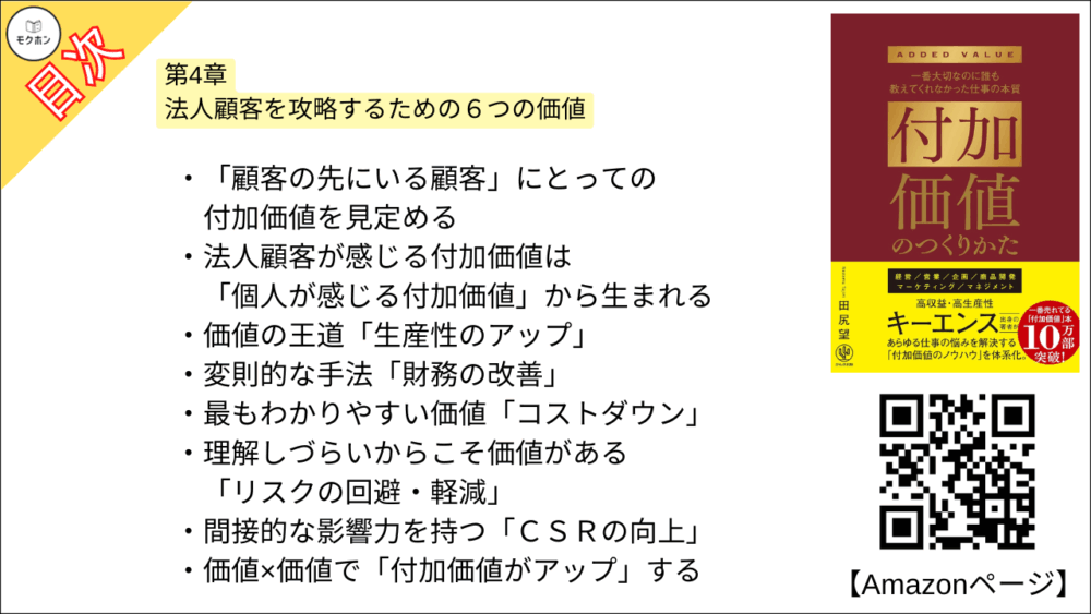 【付加価値のつくりかた 目次】第4章 法人顧客を攻略するための6つの価値【田尻望・要点・もくじ】