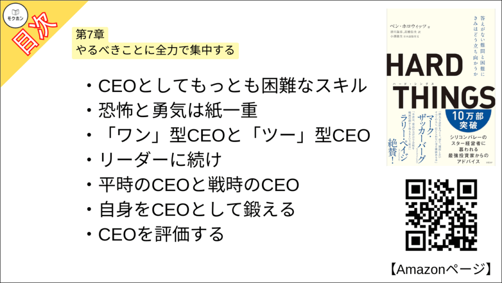 【HARD THINGS 目次】第7章 やるべきことに全力で集中する【Ben Horowitz・要点・もくじ】