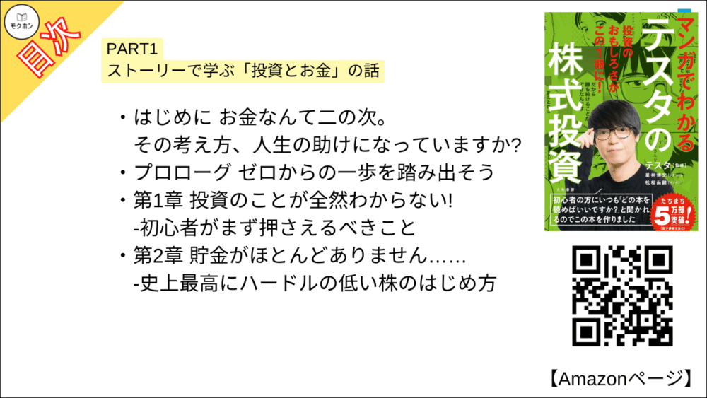 【テスタの株式投資 目次】PART1 ストーリーで学ぶ「投資とお金」の話【星井博文・要点・もくじ】