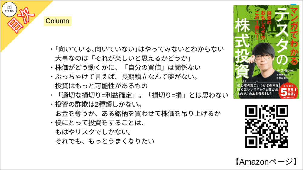 星井博文さんの「マンガでわかるテスタの株式投資」の全もくじを紹介します。