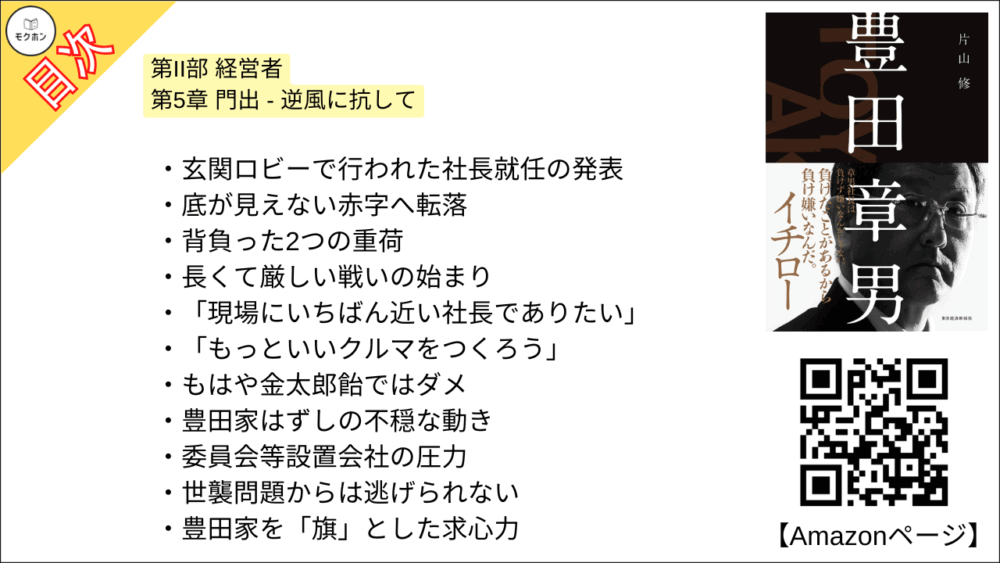 【豊田章男 目次】第II部 経営者 第5章 門出 – 逆風に抗して 【片山修・要点・もくじ】