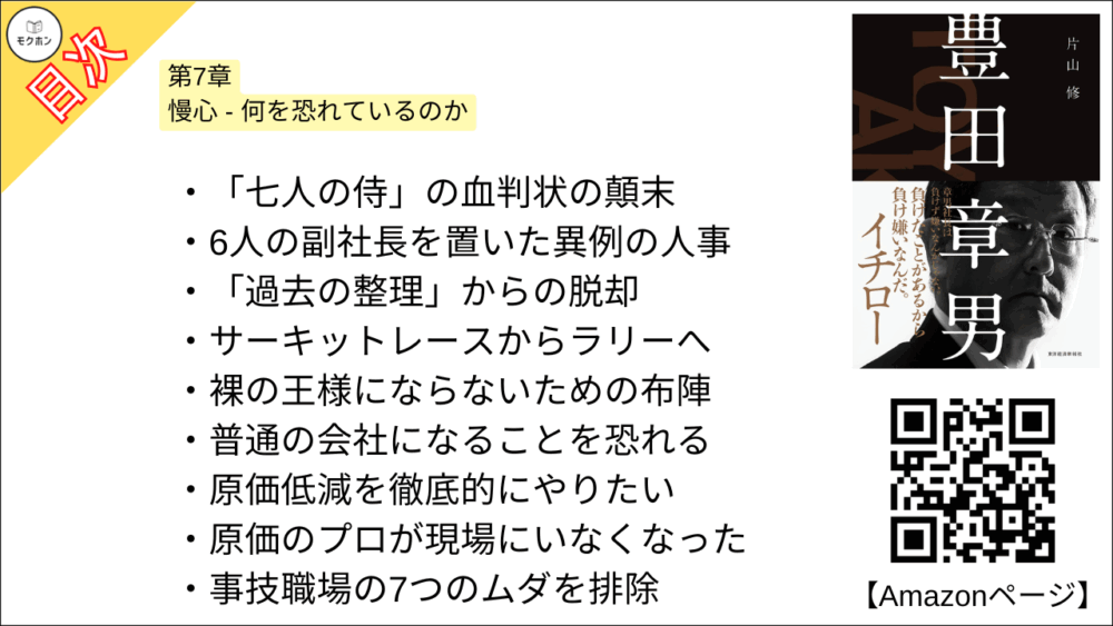 【豊田章男 目次】第7章 慢心 – 何を恐れているのか【片山修・要点・もくじ】