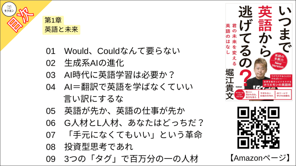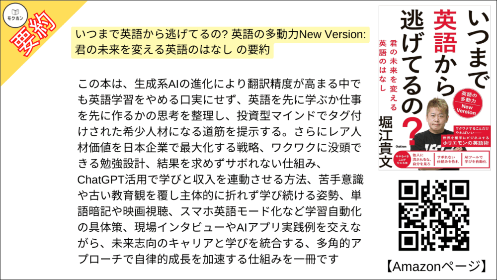 【全目次】いつまで英語から逃げてるの? 英語の多動力New Version: 君の未来を変える英語のはなし / 堀江 貴文【要約・もくじ・評価感想】#いつまで英語から逃げてるの #英語の多動力 #堀江貴文 #英語