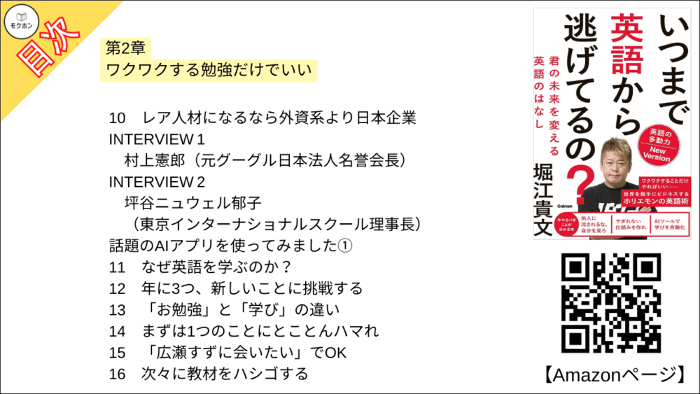 【いつまで英語から逃げてるの? 英語の多動力 目次】第2章 ワクワクする勉強だけでいい【堀江貴文・要点・もくじ】
