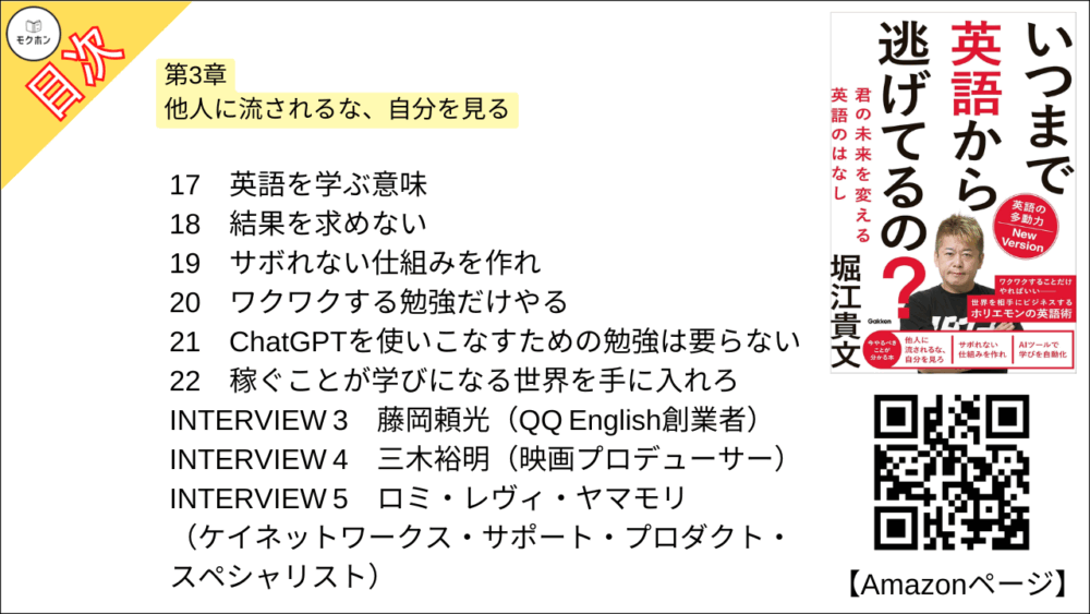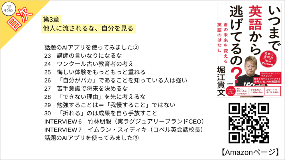 【いつまで英語から逃げてるの? 英語の多動力 目次】第3章 他人に流されるな、自分を見る【堀江貴文・要点・もくじ】