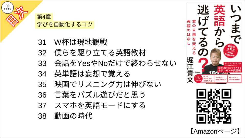 【いつまで英語から逃げてるの? 英語の多動力 目次】第4章 学びを自動化するコツ【堀江貴文・要点・もくじ】