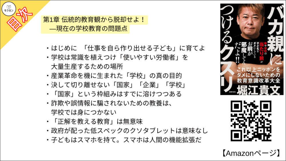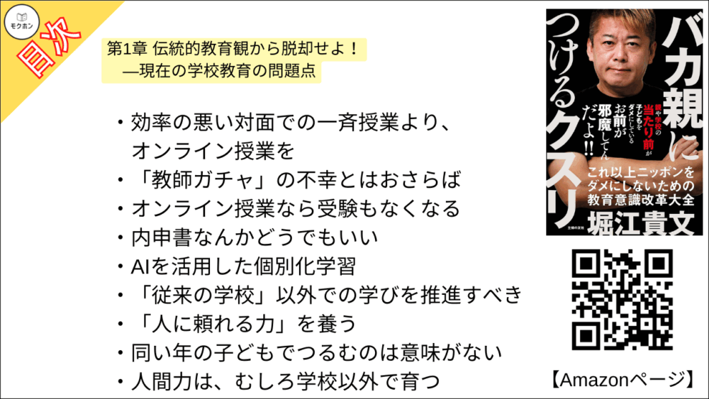 第1章 伝統的教育観から脱却せよ! ―現在の学校教育の問題点【堀江貴文・要点・もくじ・モクホン】