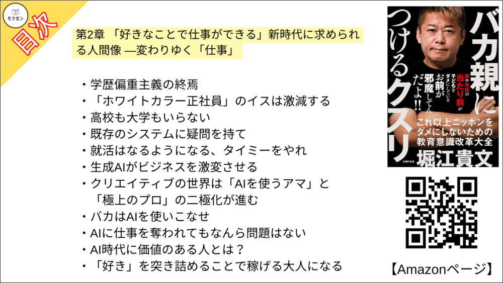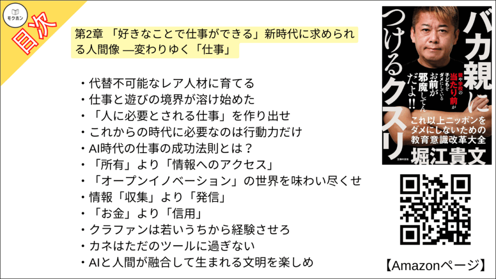 第2章 「好きなことで仕事ができる」新時代に求められる人間像 ―変わりゆく「仕事」【堀江貴文・要点・もくじ・モクホン】