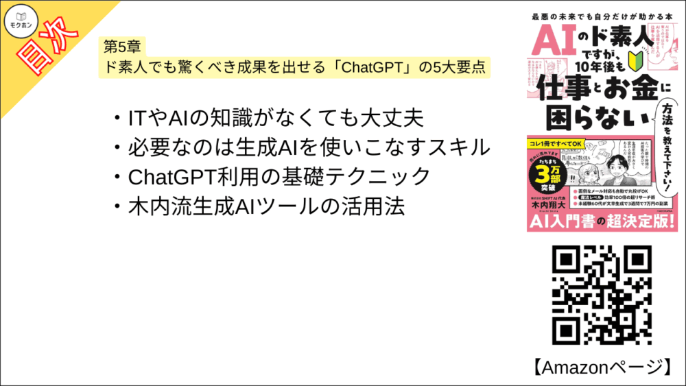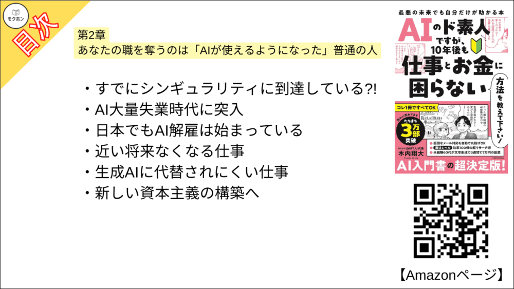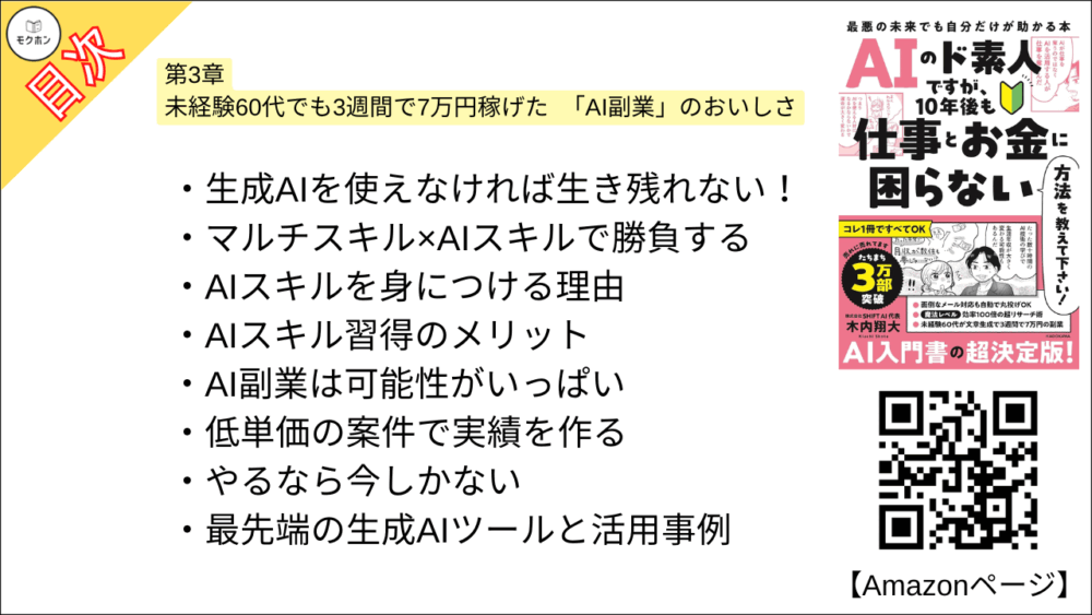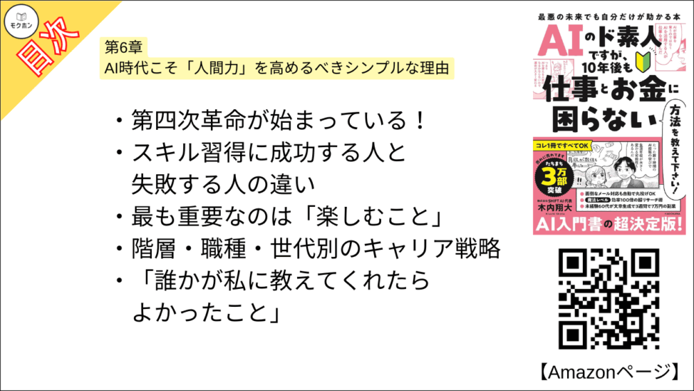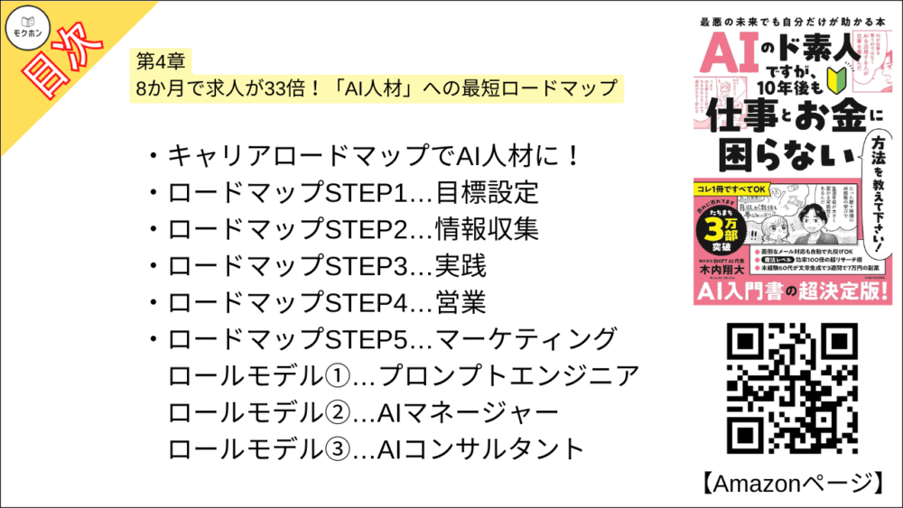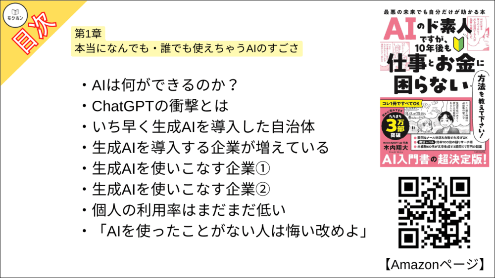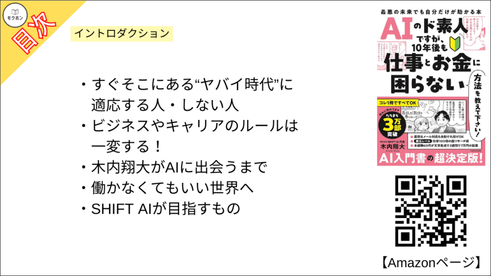 【AIのド素人ですが、10年後も仕事とお金に困らない方法を教えて下さい! 最悪の未来でも自分だけが助かる本 目次】【木内 翔大・要点・もくじ】