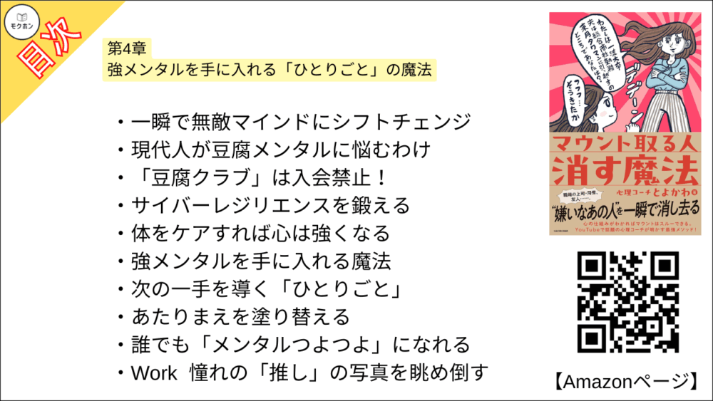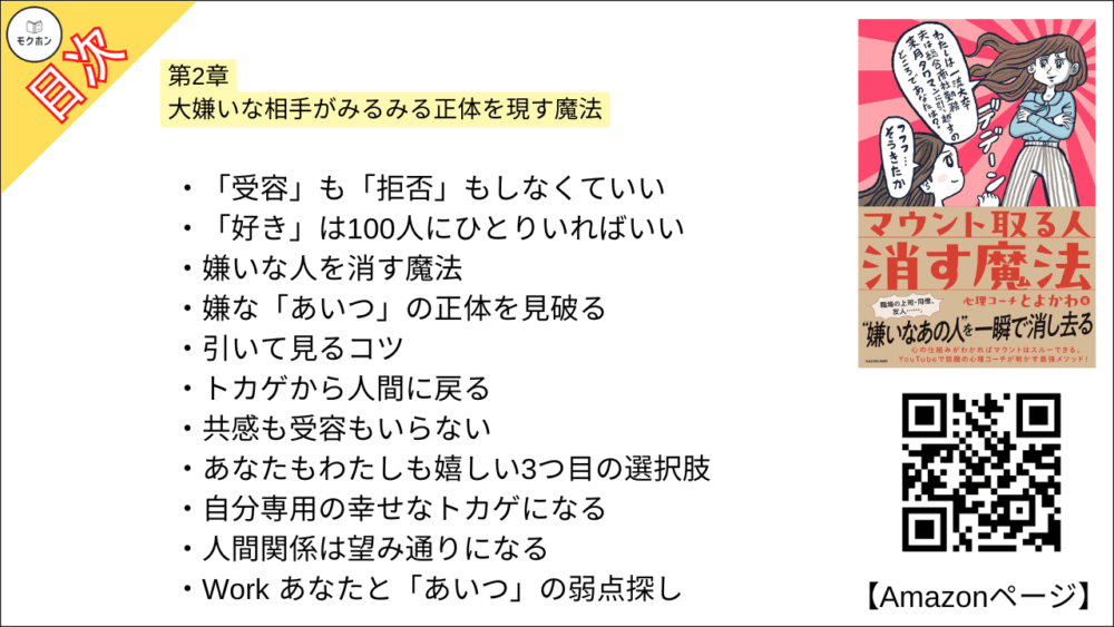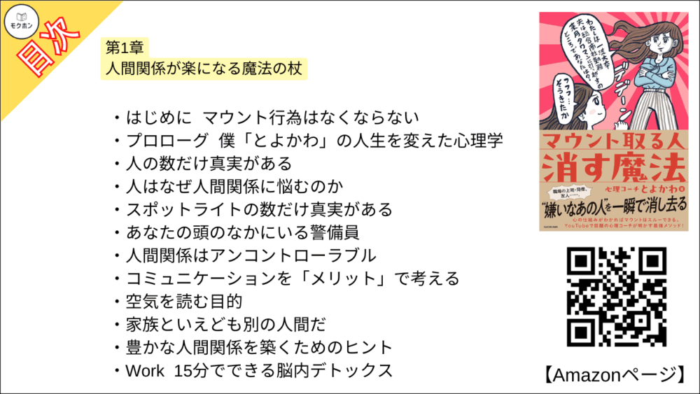 心理コーチとよかわさんの「マウント取る人 消す魔法」の全もくじを紹介します。