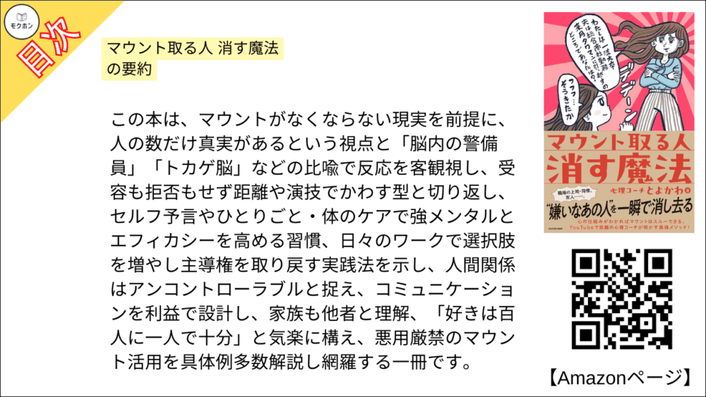 【全目次】マウント取る人 消す魔法 / 心理コーチとよかわ【要約・もくじ・評価感想】#マウント取る人消す魔法 #心理コーチとよかわ