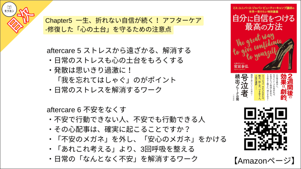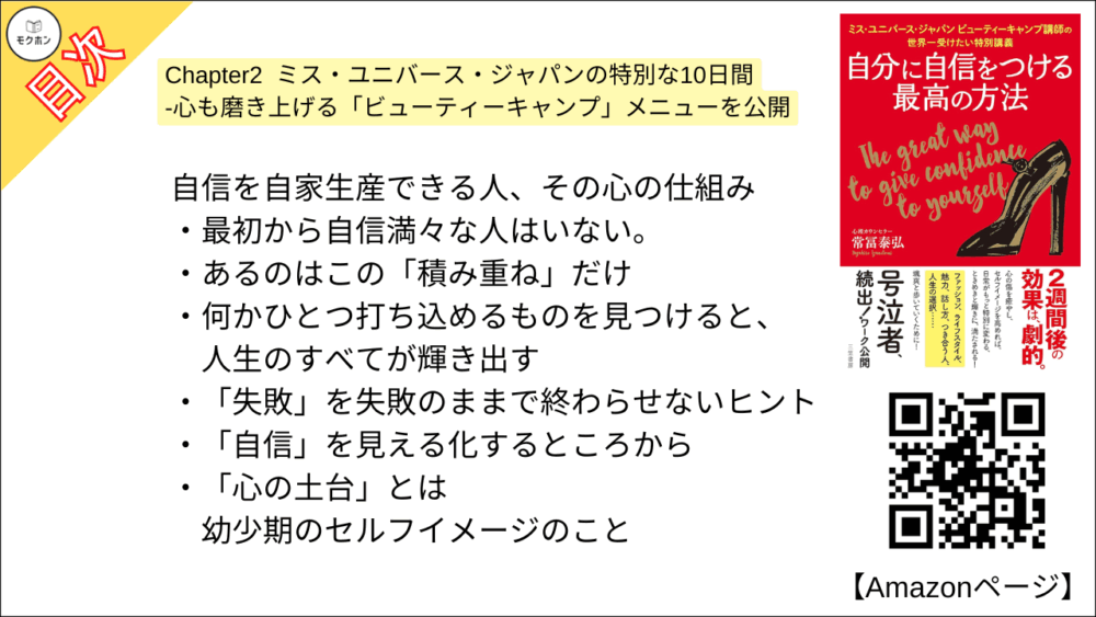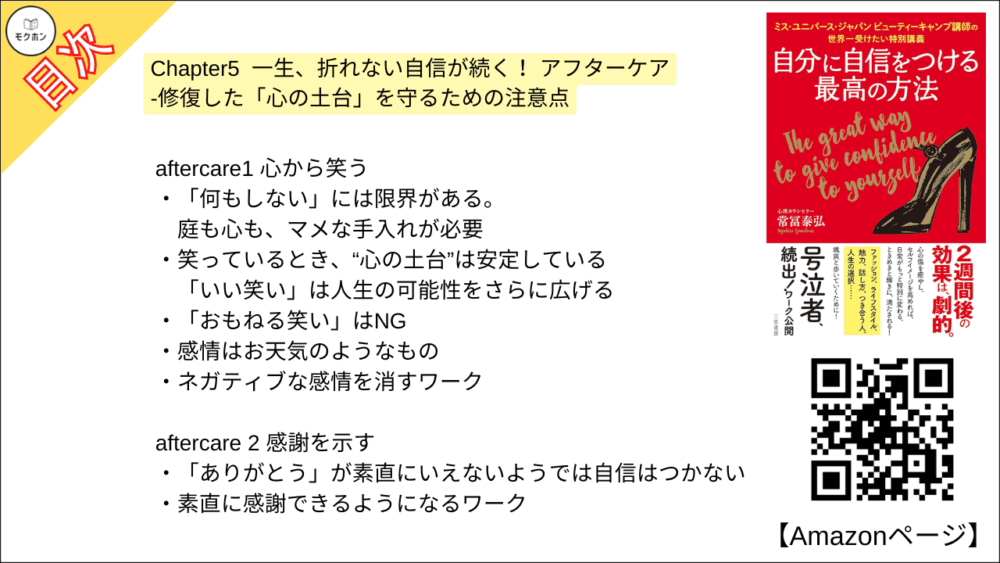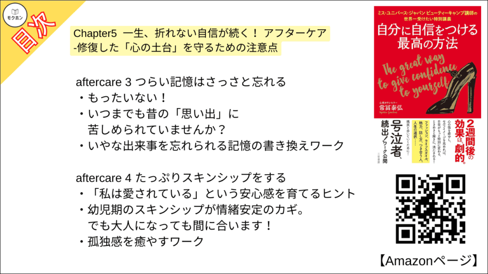 【自分に自信をつける最高の方法―――ミス・ユニバース・ジャパンビューティーキャンプ講師の世界一受けたい特別講義 目次】Chapter5 一生、折れない自信が続く! アフターケア【常冨 泰弘・要点・もくじ】