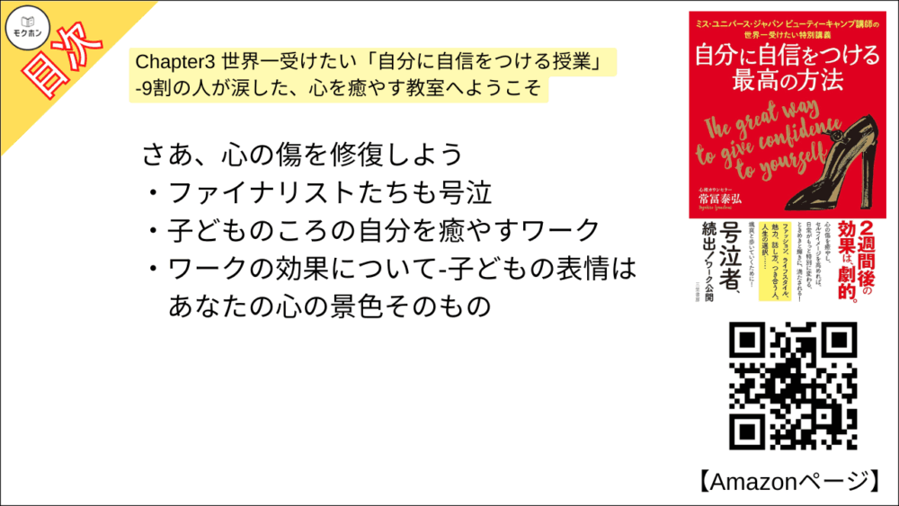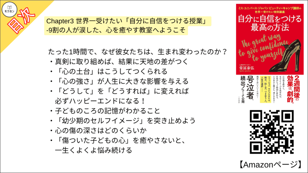 【自分に自信をつける最高の方法―――ミス・ユニバース・ジャパンビューティーキャンプ講師の世界一受けたい特別講義 目次】Chapter3 世界一受けたい「自分に自信をつける授業」【常冨 泰弘・要点・もくじ】