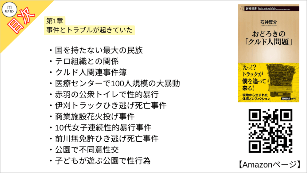 【おどろきの「クルド人問題」 目次】第1章 事件とトラブルが起きていた【石神 賢介・要点・もくじ・モクホン】