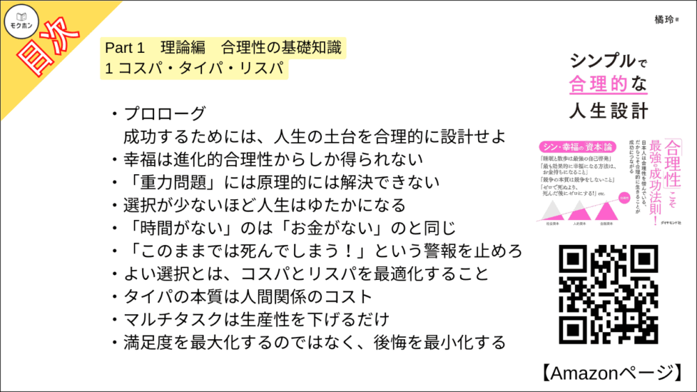 【シンプルで合理的な人生設計 目次】Part 1 理論編 合理性の基礎知識【橘 玲・要点・もくじ・モクホン】