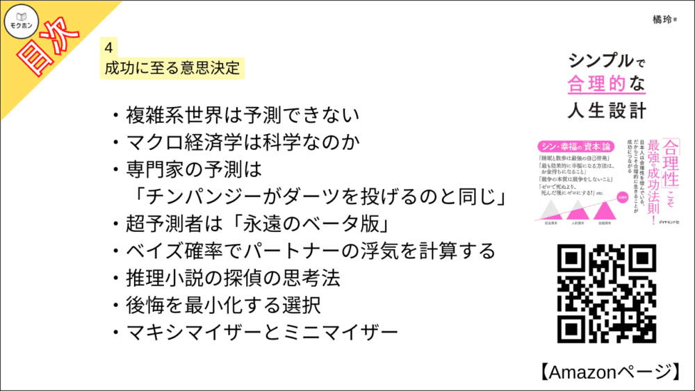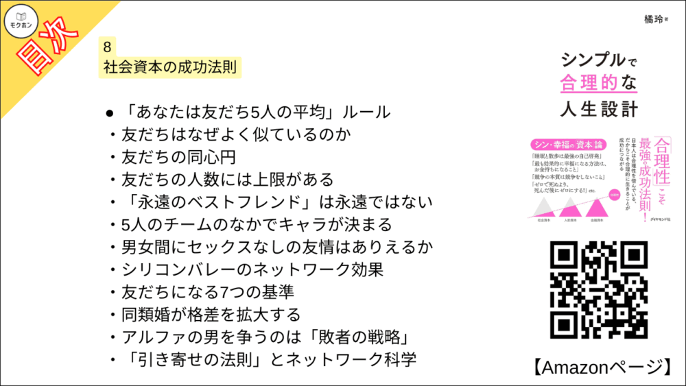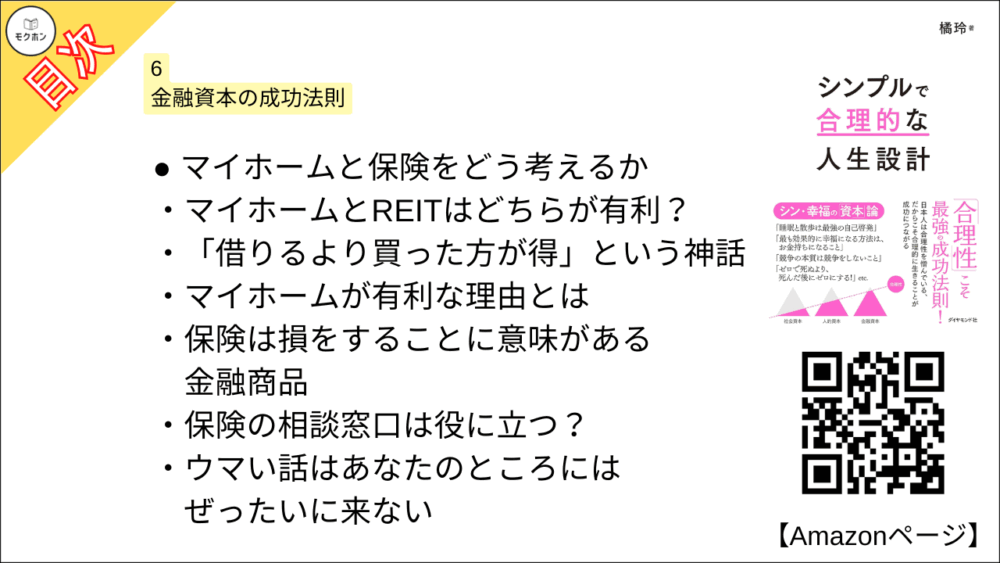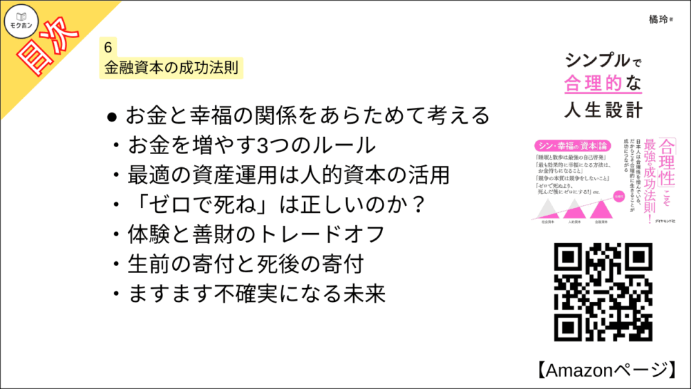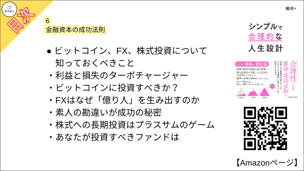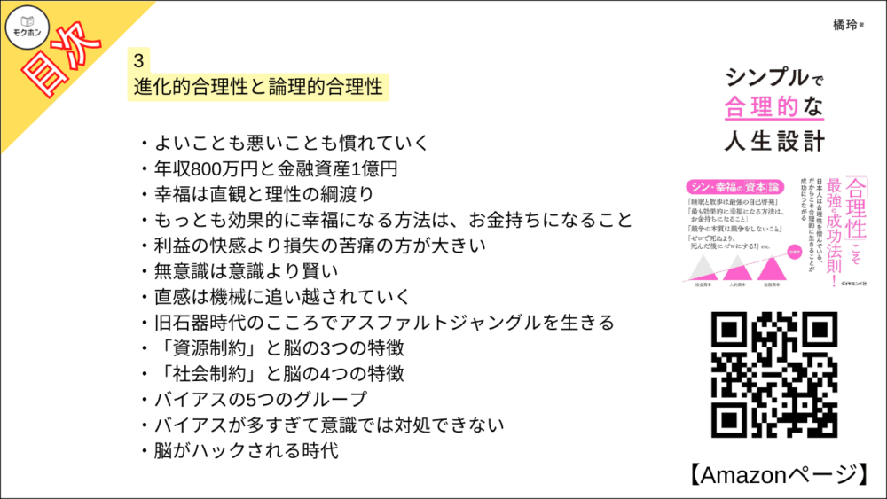 橘 玲さんの「シンプルで合理的な人生設計」の全もくじを紹介します。