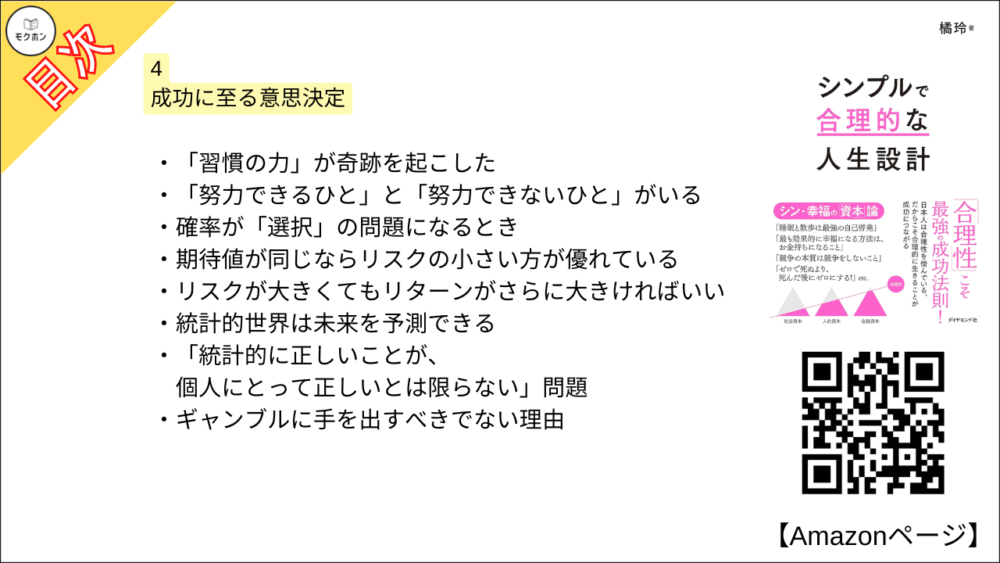 【シンプルで合理的な人生設計 目次】成功するためには、人生の土台を合理的に設計せよ【橘 玲・要点・もくじ・モクホン】