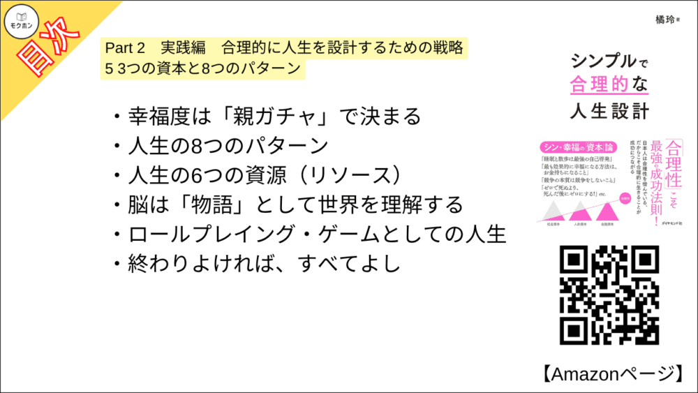 【シンプルで合理的な人生設計 目次】Part 2 実践編 合理的に人生を設計するための戦略【橘 玲・要点・もくじ・モクホン】