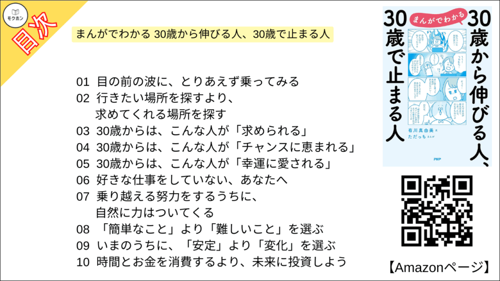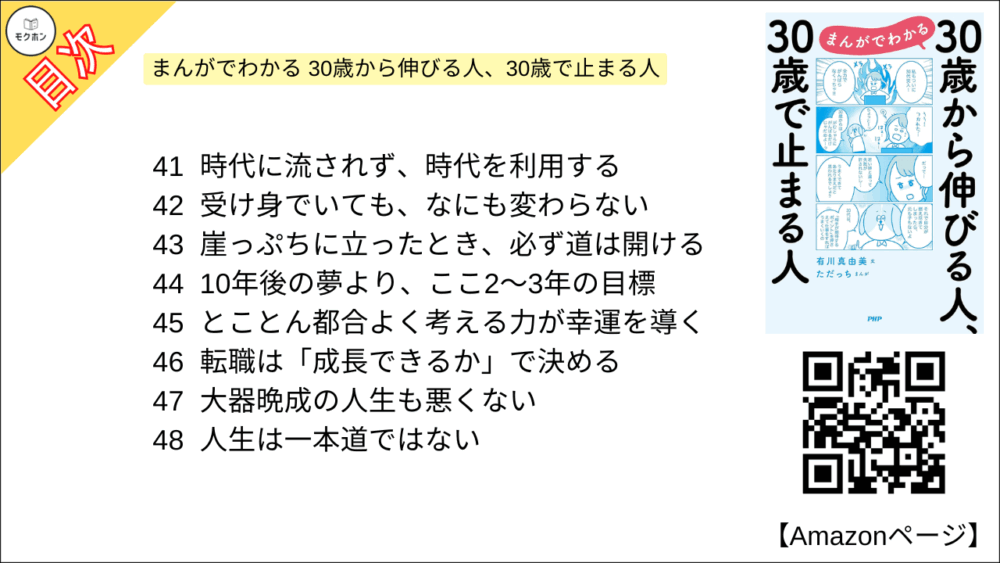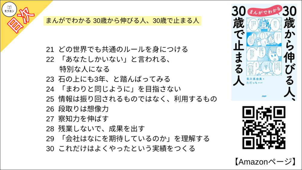 【まんがでわかる 30歳から伸びる人、30歳で止まる人 目次】【有川真由美・要点・もくじ・モクホン】