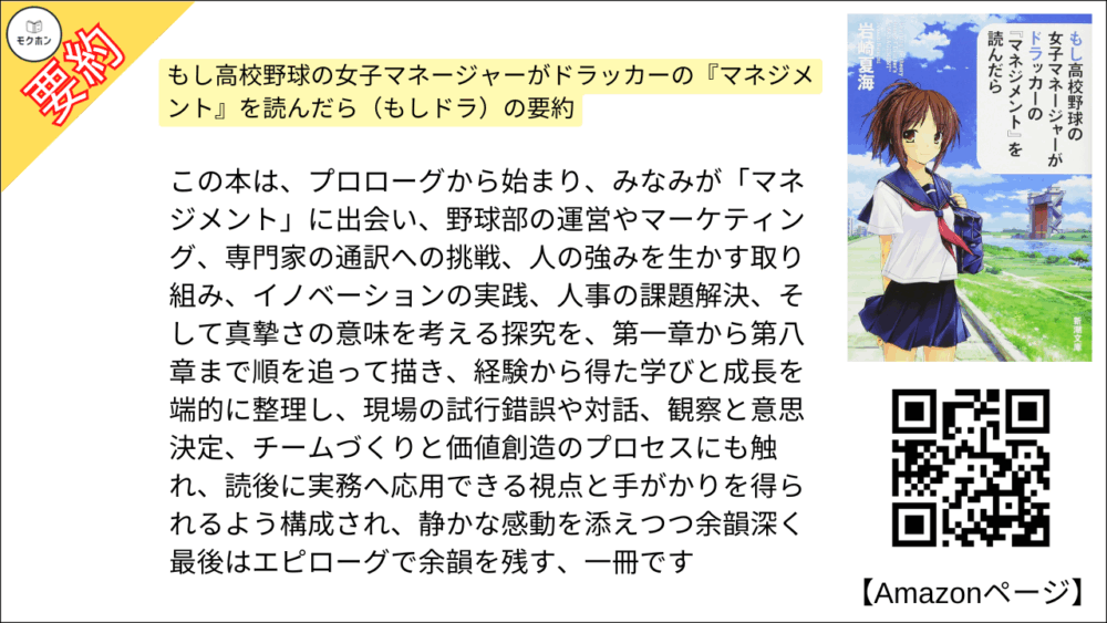【もし高校野球の女子マネージャーがドラッカーの『マネジメント』を読んだら(もしドラ) 目次】【岩崎 夏海・要点・もくじ・モクホン】