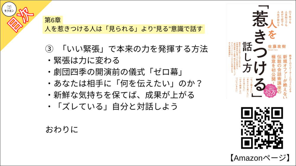 佐藤 政樹さんの「人を「惹きつける」話し方――口下手でも人見知りでもあがり症でも人生が変わる」の全もくじを紹介します。