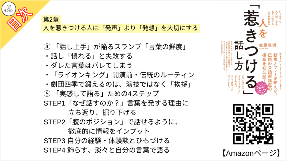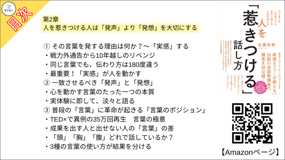 【人を「惹きつける」話し方――口下手でも人見知りでもあがり症でも人生が変わる 目次】第2章 人を惹きつける人は「発声」より「発想」を大切にする【佐藤 政樹・要点・もくじ・モクホン】