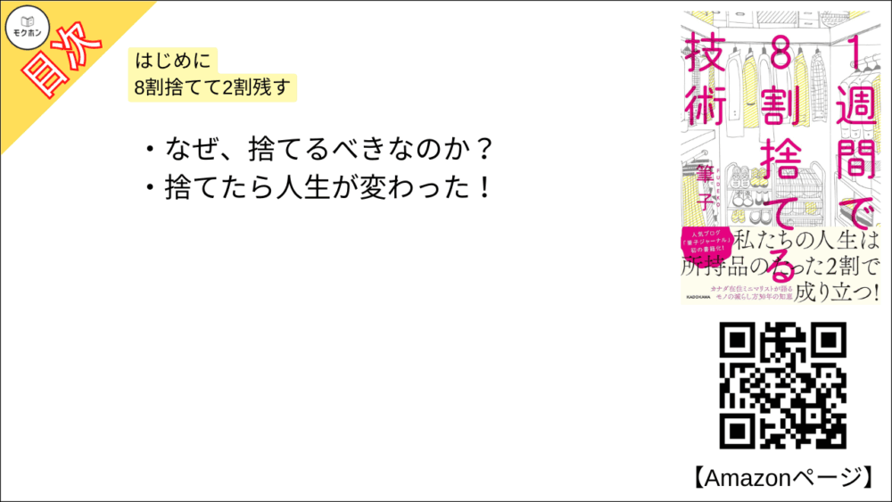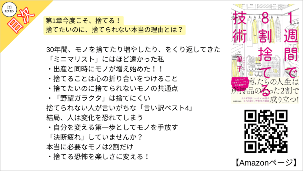 【1週間で8割捨てる技術 目次】第1章 今度こそ、捨てる!【筆子・要点・もくじ・モクホン】
