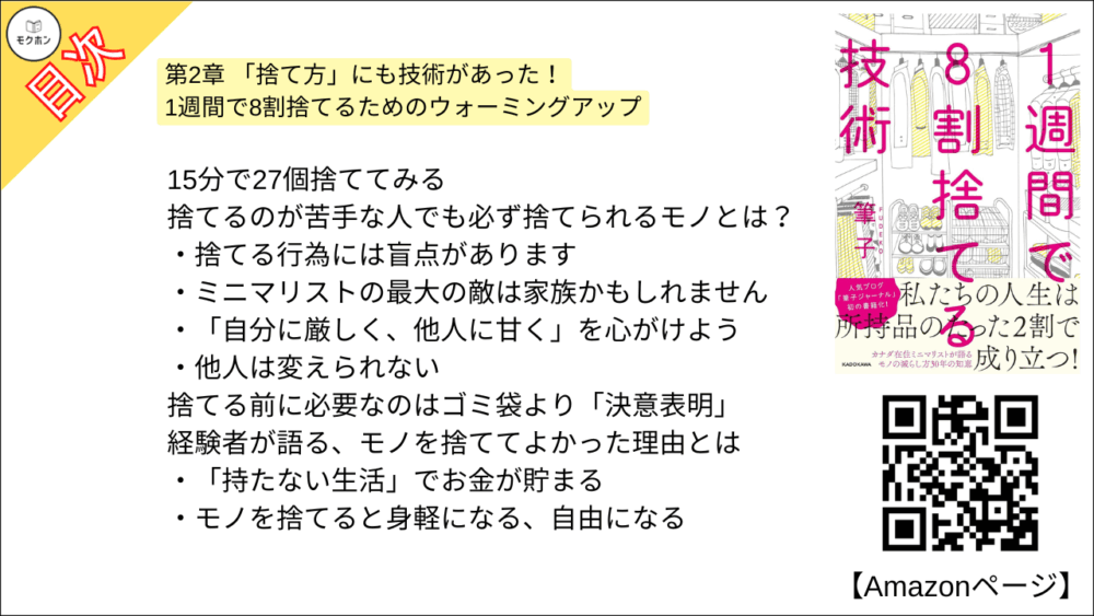 【1週間で8割捨てる技術 目次】第2章 「捨て方」にも技術があった!【筆子・要点・もくじ・モクホン】