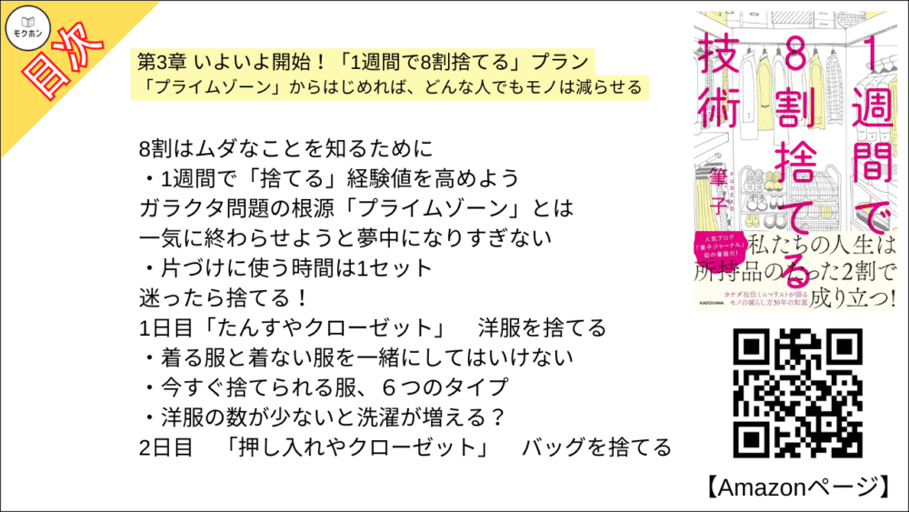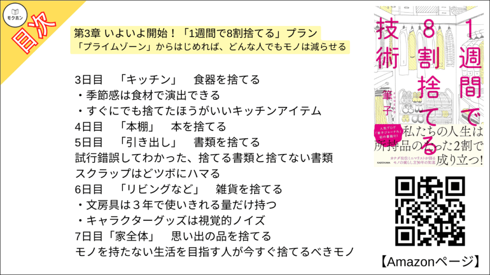 【1週間で8割捨てる技術 目次】第3章 いよいよ開始!「1週間で8割捨てる」プラン【筆子・要点・もくじ・モクホン】