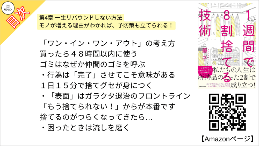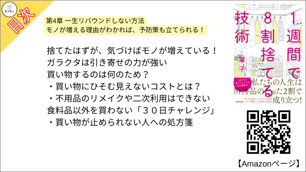 【1週間で8割捨てる技術 目次】第4章 一生リバウンドしない方法【筆子・要点・もくじ・モクホン】