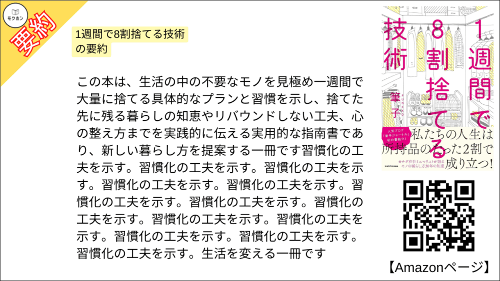 【全目次】1週間で8割捨てる技術 / 筆子【要約・もくじ・評価感想】 #人を惹きつける話し方 #筆子 #掃除 #ミニマリズム