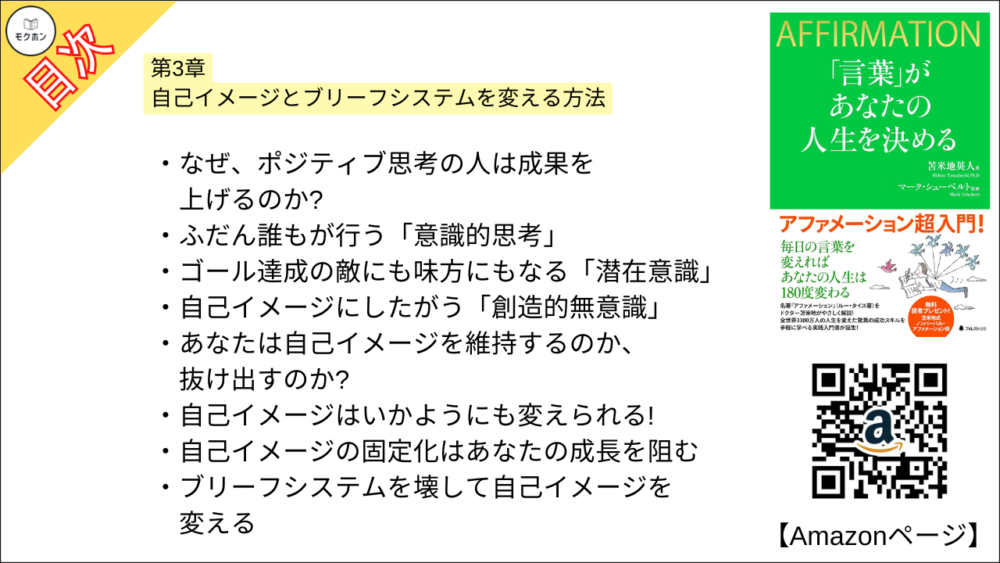 【「言葉」があなたの人生を決める 目次】第3章 自己イメージとブリーフシステムを変える方法【苫米地 英人・要点・もくじ・モクホン】