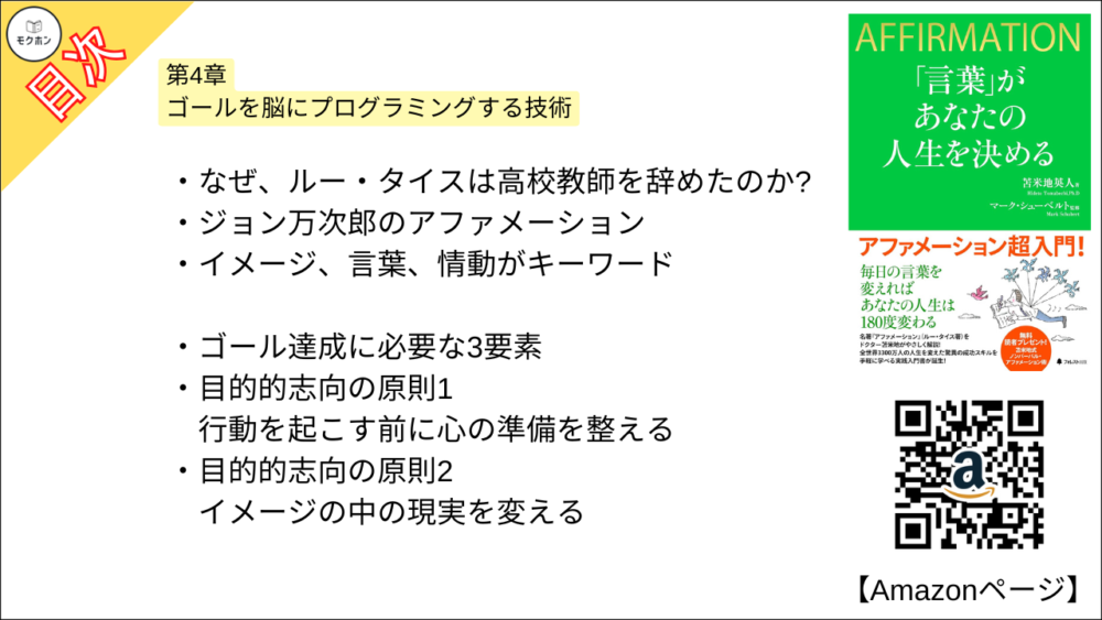 【「言葉」があなたの人生を決める 目次】第4章 ゴールを脳にプログラミングする技術【苫米地 英人・要点・もくじ・モクホン】