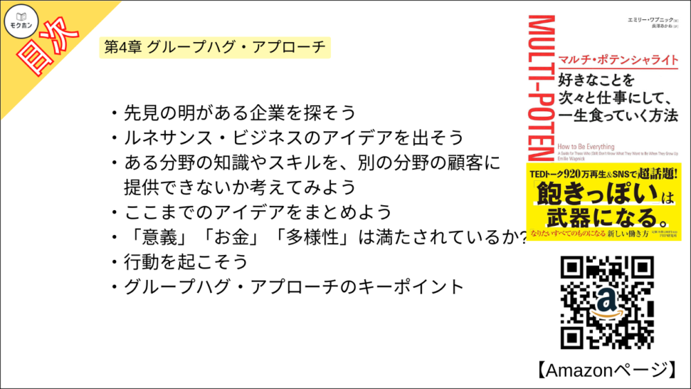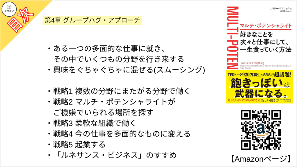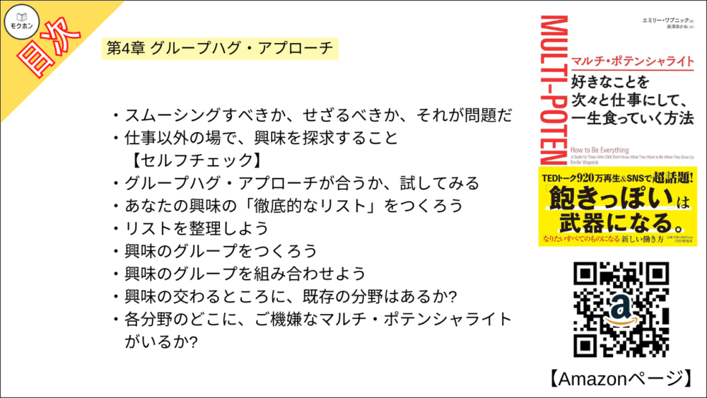 【マルチ・ポテンシャライト 目次】第4章 グループハグ・アプローチ【エミリー ワプニック・要点・もくじ・モクホン】