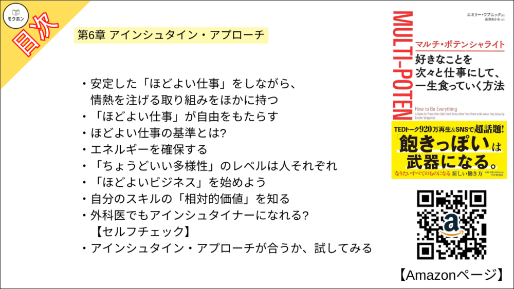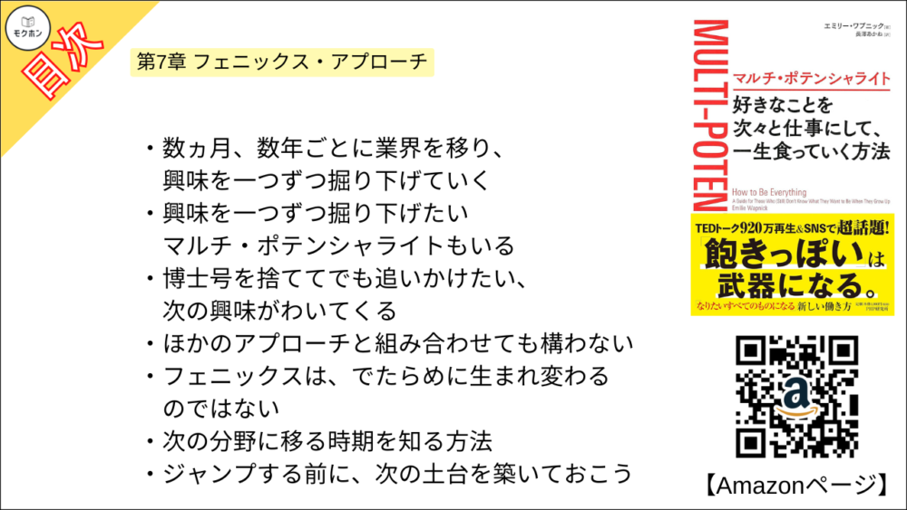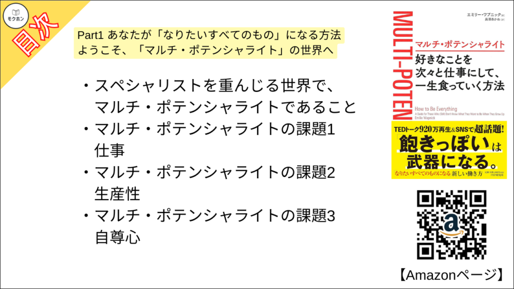 【全目次】マルチ・ポテンシャライト 好きなことを次々と仕事にして、一生食っていく方法 / エミリー ワプニック【要約・もくじ・評価感想】 #マルチポテンシャライト #エミリーワプニック