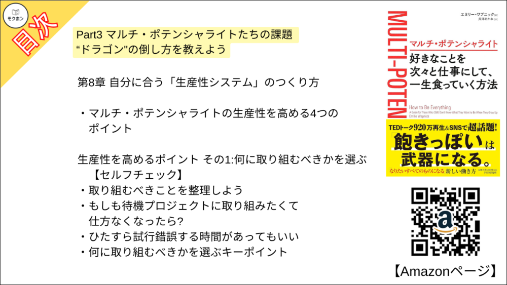 【マルチ・ポテンシャライト 目次】第8章 自分に合う「生産性システム」のつくり方【エミリー ワプニック・要点・もくじ・モクホン】