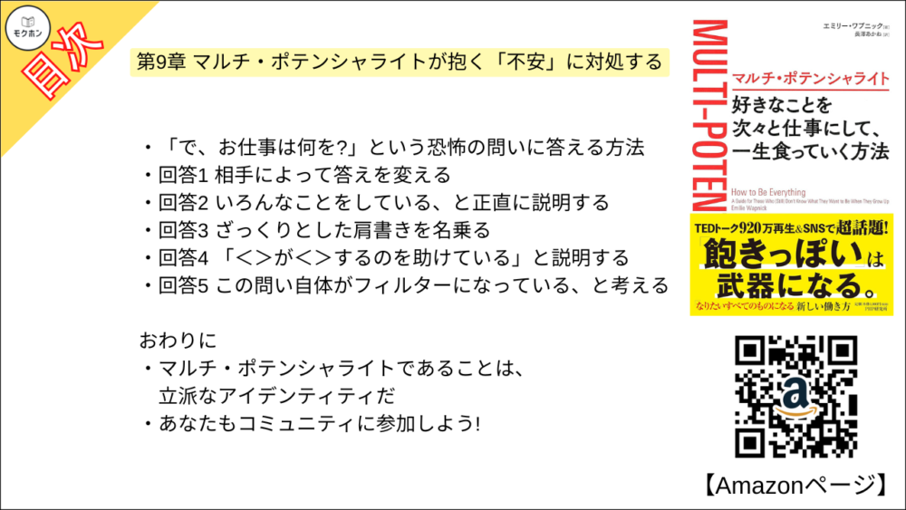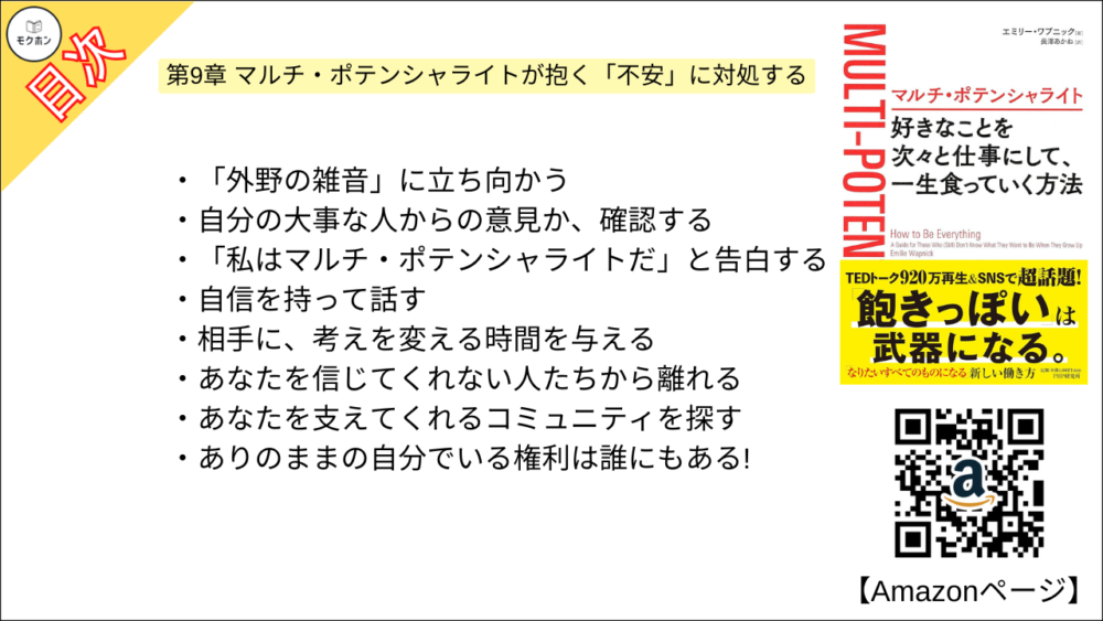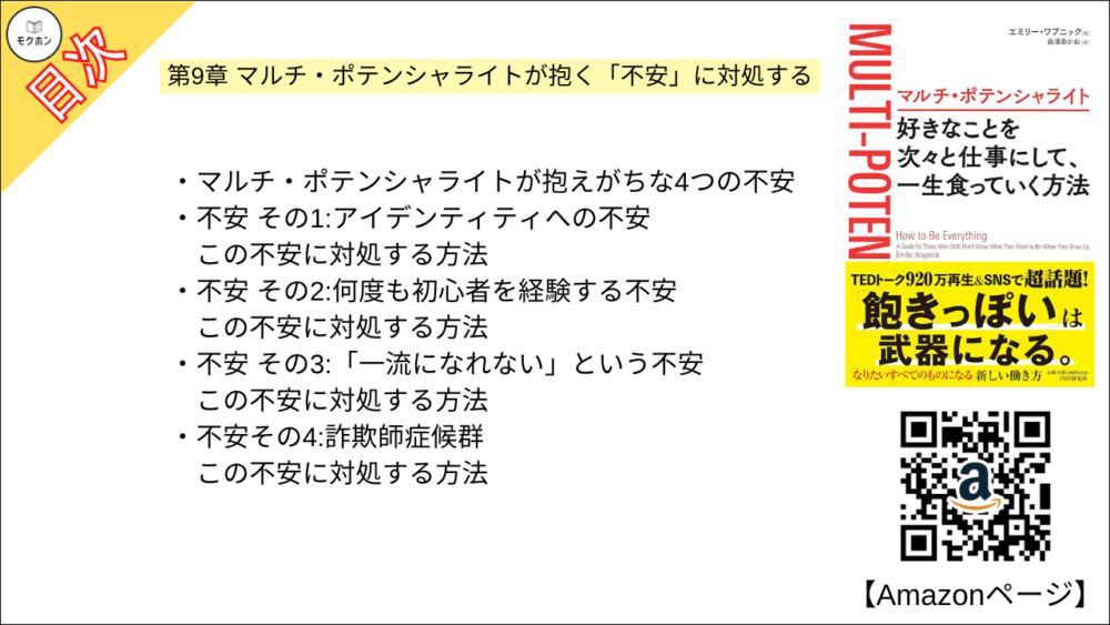【マルチ・ポテンシャライト 目次】第9章 マルチ・ポテンシャライトが抱く「不安」に対処する【エミリー ワプニック・要点・もくじ・モクホン】