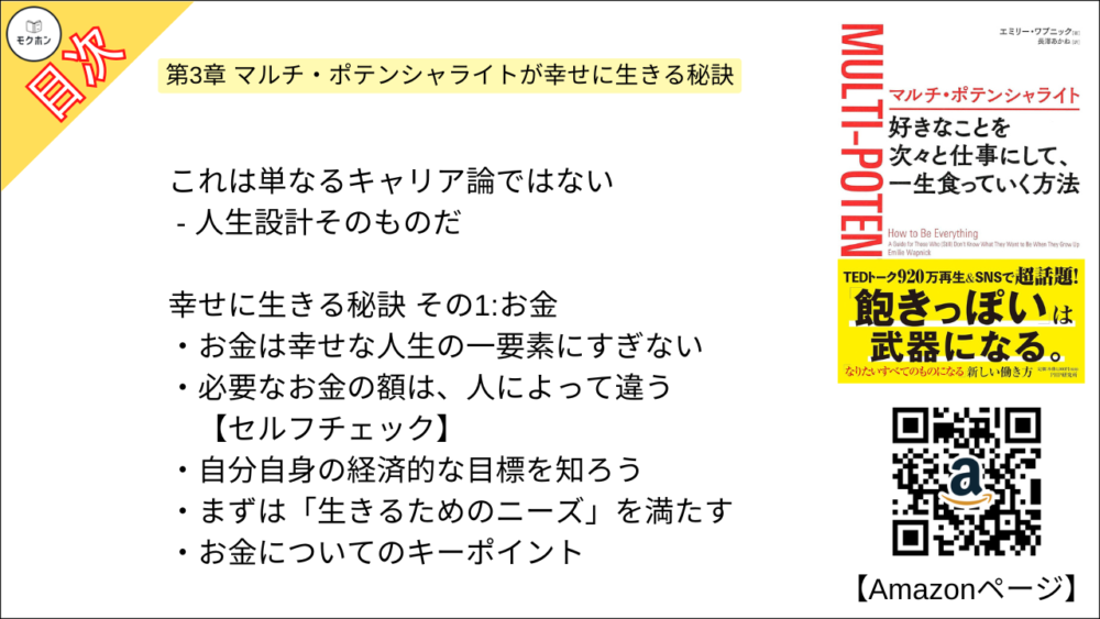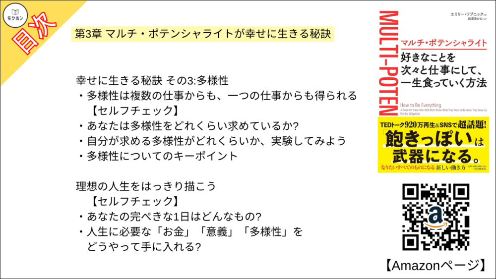 【マルチ・ポテンシャライト 目次】第3章 マルチ・ポテンシャライトが幸せに生きる秘訣【エミリー ワプニック・要点・もくじ・モクホン】