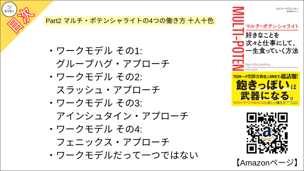 【マルチ・ポテンシャライト 目次】Part2 マルチ・ポテンシャライトの4つの働き方 十人十色【エミリー ワプニック・要点・もくじ・モクホン】