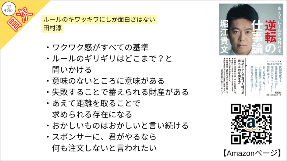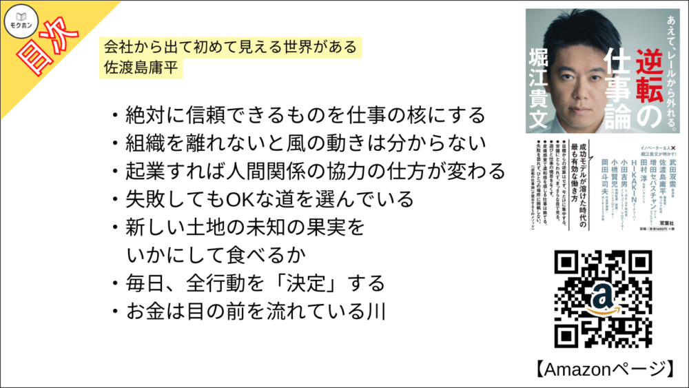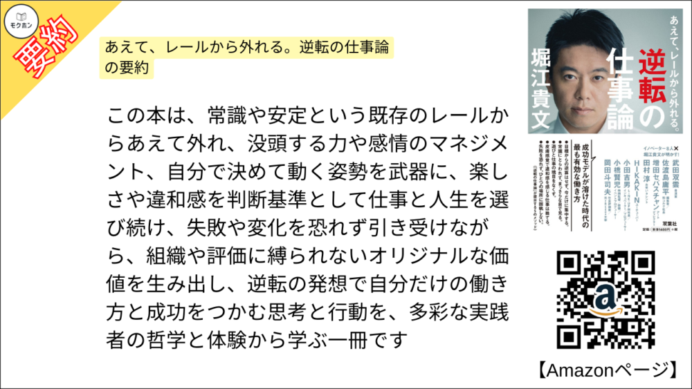 【全目次】あえて、レールから外れる。逆転の仕事論 / 堀江貴文(ホリエモン) 【要約・もくじ・評価感想・モクホン】 #逆転の仕事論 #堀江貴文 #ホリエモン