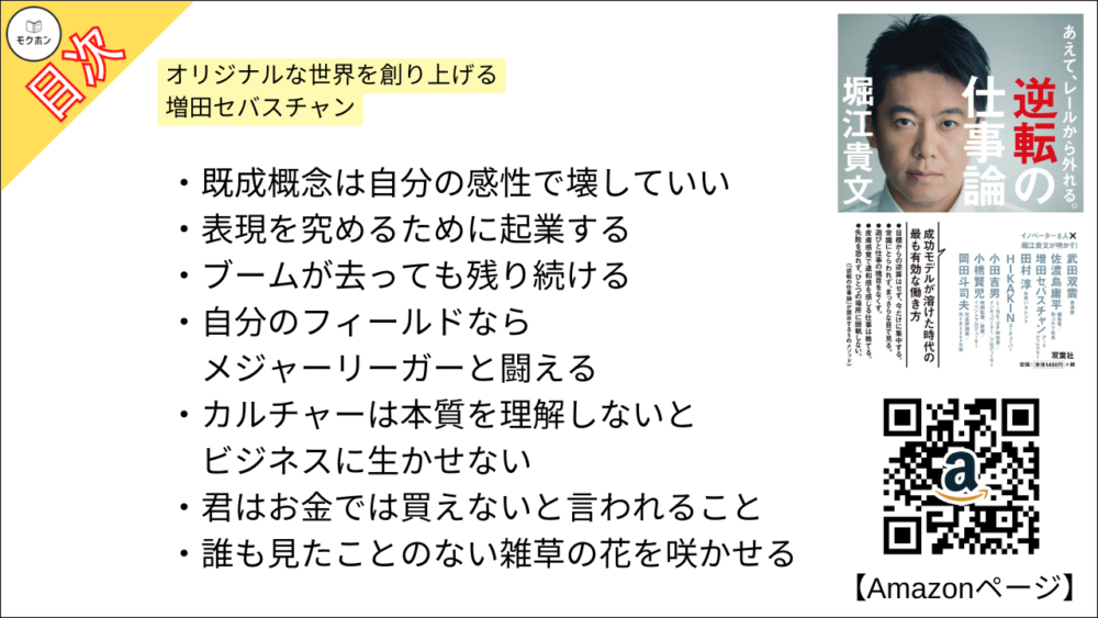 【あえて、レールから外れる。逆転の仕事論 目次】オリジナルな世界を創り上げる – 増田セバスチャン【堀江貴文(ホリエモン)・要約・もくじ・モクホン】